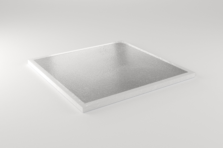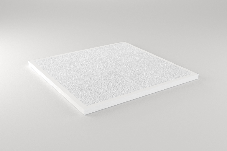 Composição : Placa de Gesso com Película de PVC Branca na sua face aparente, Película aluminizada Refletora na face oposta com fita protetora nas bordas