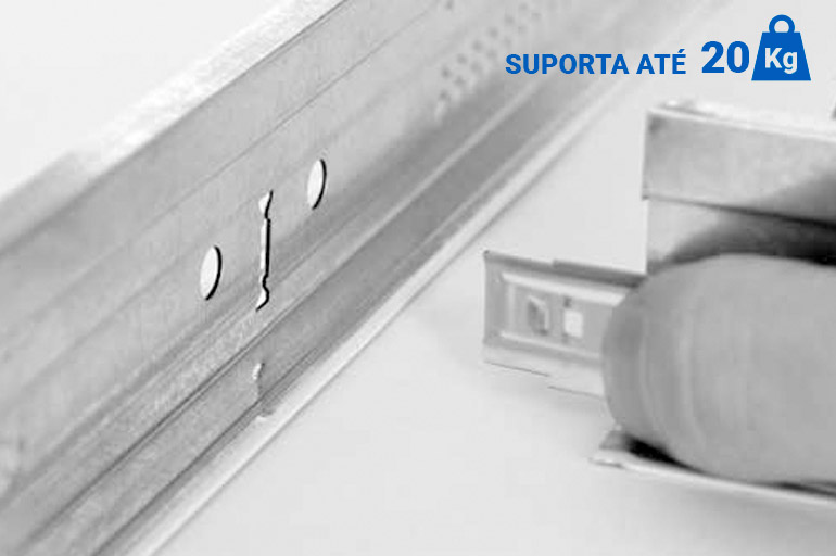 Com o sistema de travamento clip, o encaixe se torna rápido e seguro, assim como o destravamento, sem uso de ferramentas. Com longarinas medindo 3.750 mm de compriment, reduz o número de emendas e tempo de instalação.